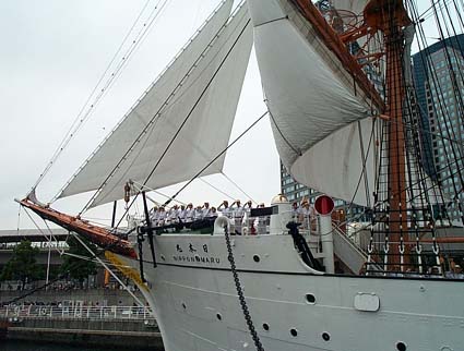 予定ではいつも通り総帆展帆が行われる予定でしたが、